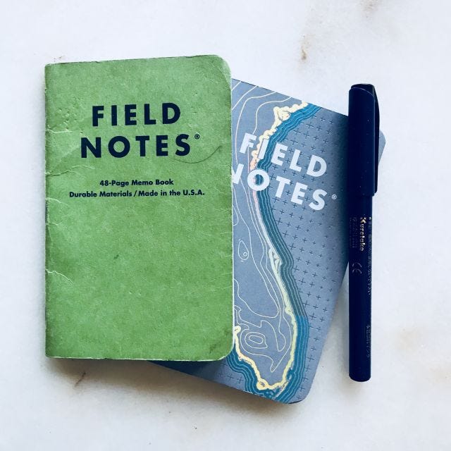 Please listen to Take Note, a podcast I record with my friend Ted (he of scorekeeping week above) about keeping a notebook. Take a gander at the associated blog, which features photos of weird dog stickers and an essay by Ted that draws more connections between baseball and notebooks.